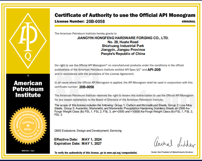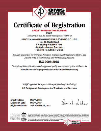江陰市洪峰五金鍛造有限公司 地址: 江蘇省江陰市臨港經濟開發區石莊園區華特西路28號